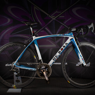 This is in a 30th Anniversary LTD edition colour scheme and comes with Campagnolo Chorus with Record chainset and rear mech upgrades. The Campag Vento wheelset really suits the setup and classic look of this Italian bike.